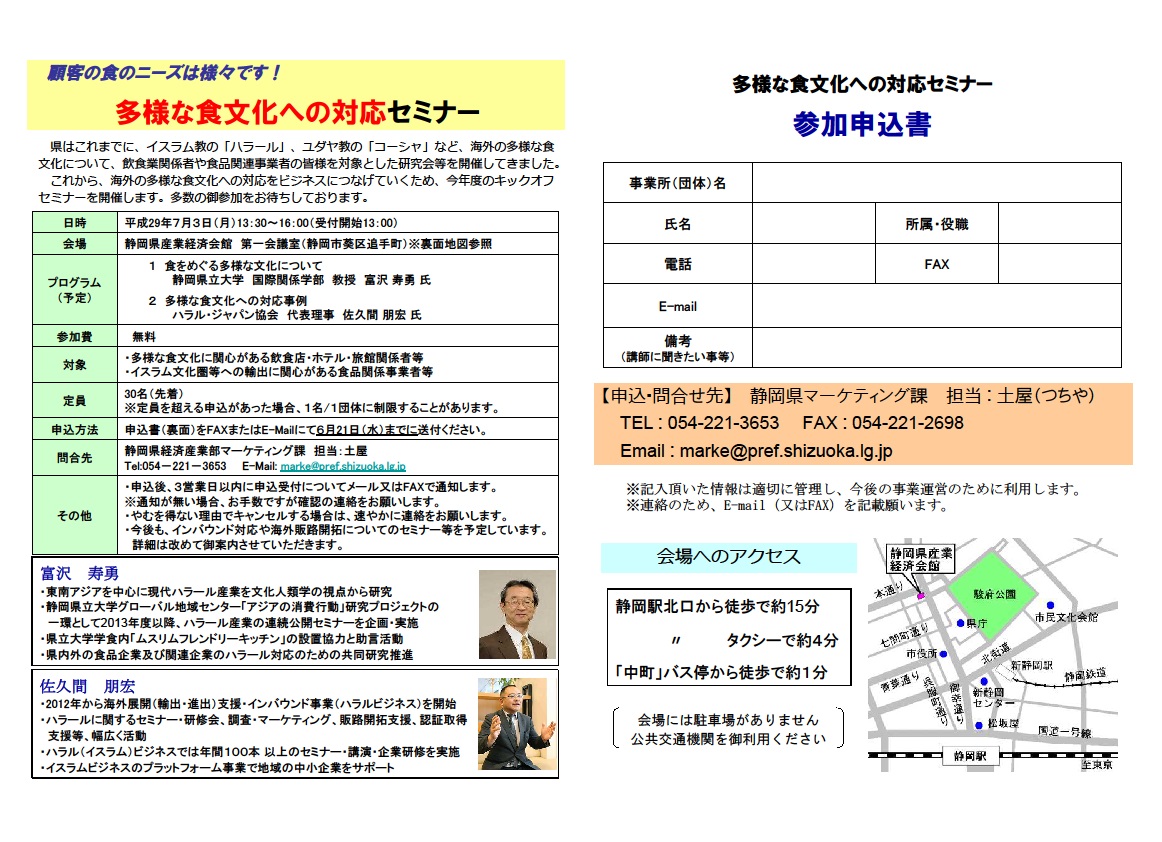 参加申込書にご記入の上、FAXまたはE-Mailにて6月21日(水)までに上記のお申込先、静岡県経済産業部マーケティング課へお送りください。