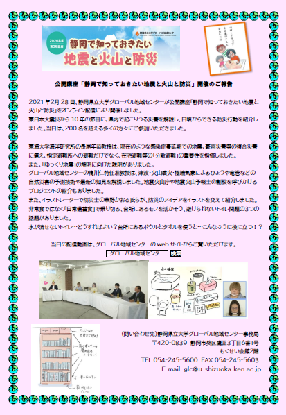 2020年度 第3期講座「静岡で知っておきたい地震と火山と防災」