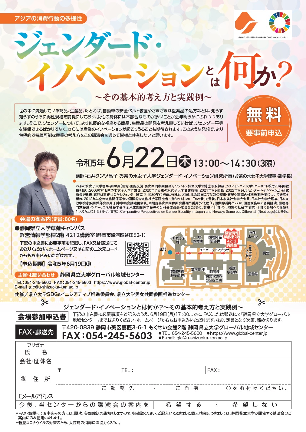 FAX・郵送にてお申込みの方には、順次、参加確認の通知をしますので、ご確認ください。ご記入いただきました個人情報につきましては、静岡県立大学が開催する講演会のご案内にのみ使用いたします。